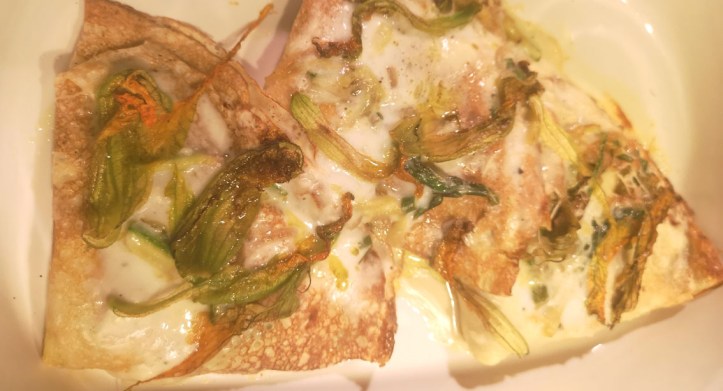- Prepare the bechamel sauce and while you are cooking and stirring it, prepare your shallots and asparagus, and clean your zucchini blossoms (little garden bugs seem to like the blossoms as a refuge, so make sure the insides are clean). Leave half of the zucchini blossoms whole (it’s ok if they petals have broken), and chop the other half, and make sure to use the stems too.