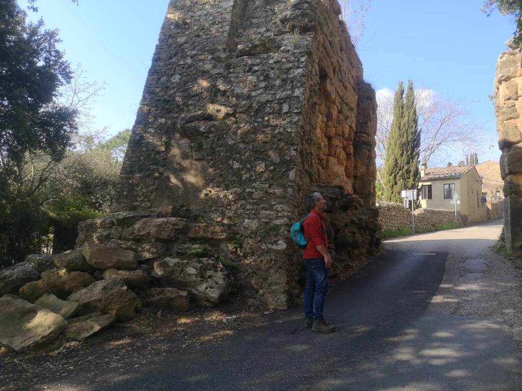After reaching the main road we soon came upon the remains of Porta Diana, which was one of the dozen or so entry gates to the walled Etruscan city of Volterra. Today it appears out of nowhere, well outside of the city center, but it gives you an idea of how much larger the Etruscan city was, with its 5-mile perimeter of walls protecting it. Today the Medieval walls that surround Volterra have only a 2.5-mile perimeter.