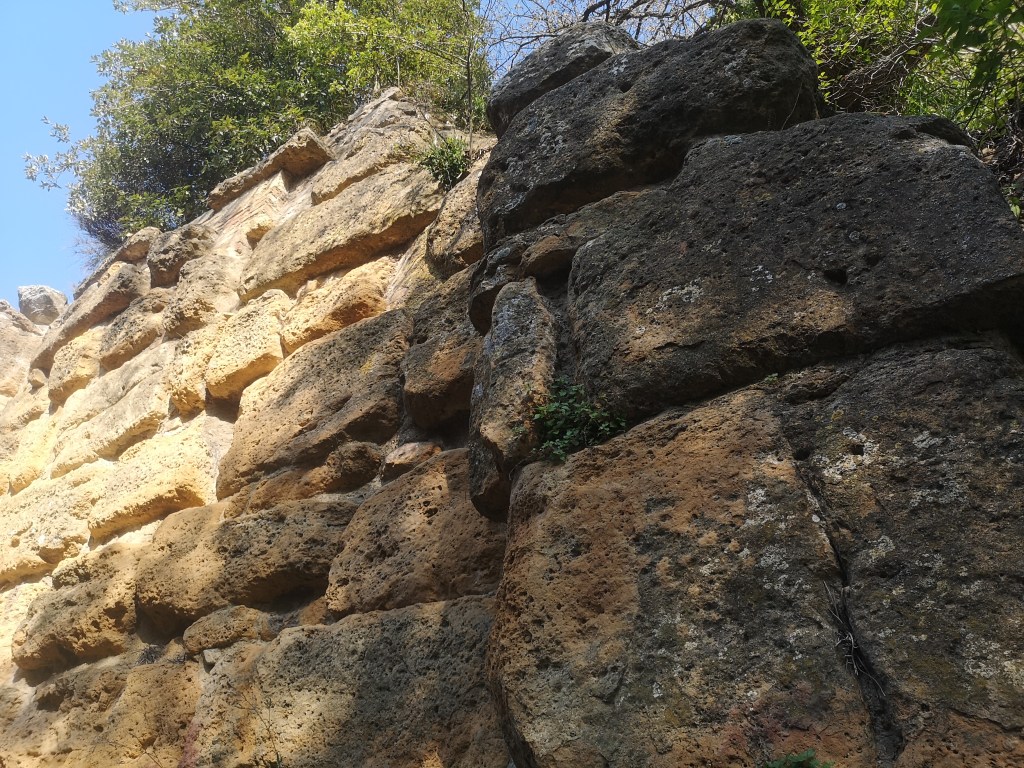 As we headed back uphill from Valle towards the Santa Margherita road we passed by an abandoned ice-house, called a ghiacciaia, where they used to keep snow and ice in the pre-refrigerator age. Ice-houses would always be built in the coolest and shadiest areas available. On the same road there are incredible rock formations – and perhaps even more incredible are the trees whose roots have crept into the fissures in the rocks over the centuries.